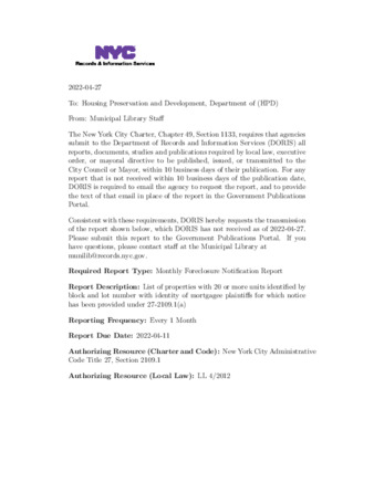 List of properties with 20 or more units identified by block and lot number with identity of mortgagee plaintiffs for which notice has been provided under 27-2109.1(a)