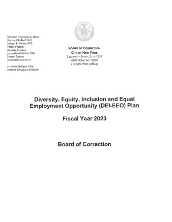 The NYC Board of Correction's FY 2023 Diversity Equity Inclusion and EEO Plan. This plan affirms the Board's commitment to the providing an inclusive workplace.