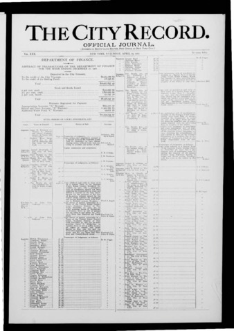 The City Record newspaper publishes notices which includes but is not limited to: public hearings and meetings, public auctions and sales, solicitations and awards and official rules proposed and adopted by city agencies. This is the City Record Newspaper for April 19, 1902.