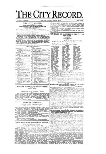 The City Record newspaper publishes notices which includes but is not limited to: public hearings and meetings, public auctions and sales, solicitations and awards and official rules proposed and adopted by city agencies. This is the City Record Newspaper for January 28, 1915.