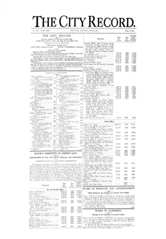 The City Record newspaper publishes notices which includes but is not limited to: public hearings and meetings, public auctions and sales, solicitations and awards and official rules proposed and adopted by city agencies. This is the City Record Newspaper for June 16, 1917.