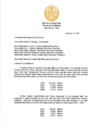 Preliminary certificate of the mayor on capital debt and obligations - FY22