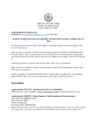 PUBLIC SCHEDULE FOR MAYOR ERIC ADAMS FOR TUESDAY, FEBRUARY 15, 2022