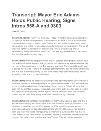 A transcript about New York City Mayor Eric Adams holding a public hearing and signing Intros 558-A and 0303 regarding housing and rent stabilization.