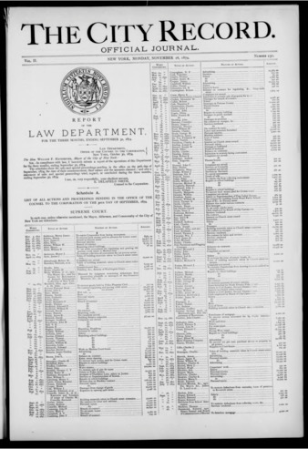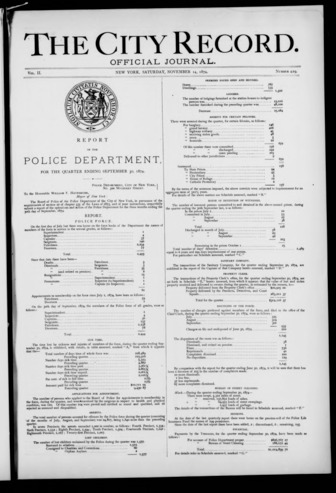 The City Record Newspapers publishes notices which include but is not limited to: public hearings and meetings, public auctions and sales, solicitations and awards and official rules proposed and adopted by city agencies. This is the City Record Newspaperss for November 1874.