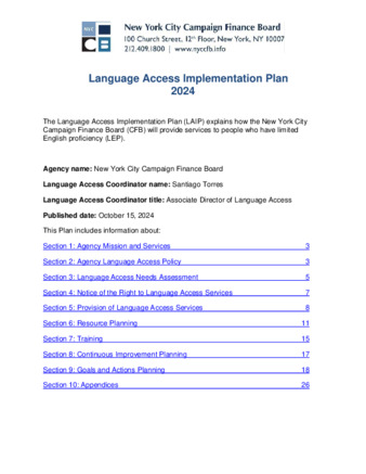 CFB 2024 Language Access Implementation Plan/Local Law 30 of 2017 Report