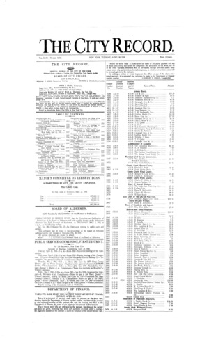 The City Record newspaper publishes notices which includes but is not limited to: public hearings and meetings, public auctions and sales, solicitations and awards and official rules proposed and adopted by city agencies. This is the City Record Newspaper for September 02, 1918.