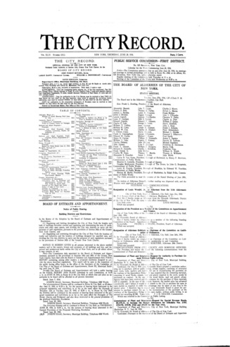 The City Record newspaper publishes notices which includes but is not limited to: public hearings and meetings, public auctions and sales, solicitations and awards and official rules proposed and adopted by city agencies. This is the City Record Newspaper for June 29, 1916.