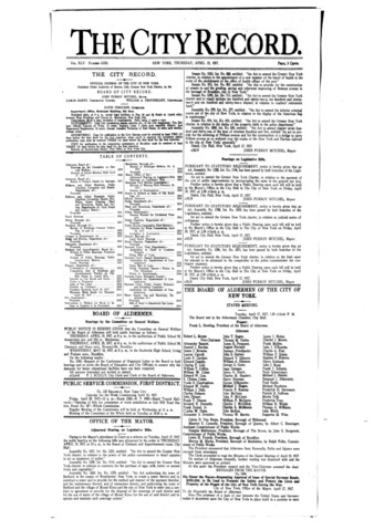 The City Record newspaper publishes notices which includes but is not limited to: public hearings and meetings, public auctions and sales, solicitations and awards and official rules proposed and adopted by city agencies. This is the City Record Newspaper for April 19, 1917.