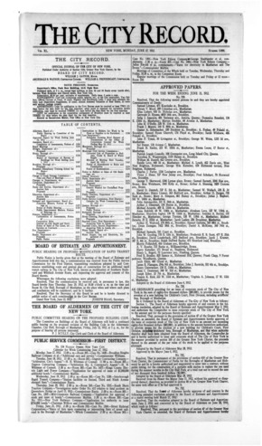 The City Record newspaper publishes notices which includes but is not limited to: public hearings and meetings, public auctions and sales, solicitations and awards and official rules proposed and adopted by city agencies. This is the City Record Newspaper for June 17, 1912.