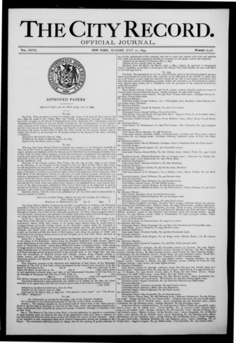The City Record newspaper publishes notices which includes but is not limited to: public hearings and meetings, public auctions and sales, solicitations and awards and official rules proposed and adopted by city agencies. This is the City Record Newspaper for July 09, 1899.