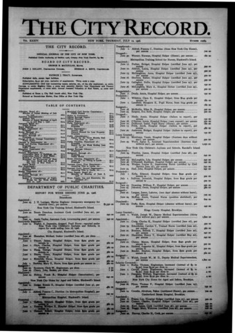 The City Record newspaper publishes notices which includes but is not limited to: public hearings and meetings, public auctions and sales, solicitations and awards and official rules proposed and adopted by city agencies. This is the City Record Newspaper for July 12, 1906.