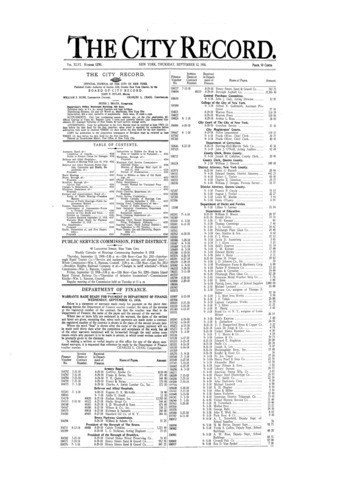The City Record newspaper publishes notices which includes but is not limited to: public hearings and meetings, public auctions and sales, solicitations and awards and official rules proposed and adopted by city agencies. This is the City Record Newspaper for September 12, 1918.