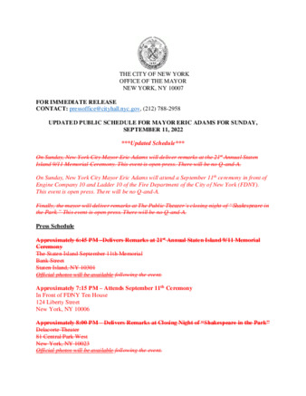 UPDATED PUBLIC SCHEDULE FOR MAYOR ERIC ADAMS FOR SUNDAY, SEPTEMBER 11, 2022