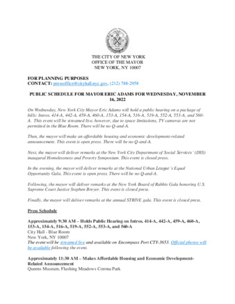 PUBLIC SCHEDULE FOR MAYOR ERIC ADAMS FOR WEDNESDAY, NOVEMBER 16, 2022
