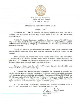 Emergency Executive Order No. 232, will extend Emergency Executive Order No. 226, dated October 7, 2022, for five (5) days, if this relates to Covid-19 Pandemic.