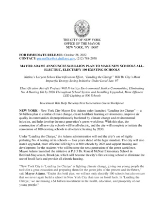 New York City Mayor Eric Adams launches “Leading the Charge " to combat climate change, create healthier learning environments, improve air quality in communities disproportionately burdened by climate change and environmental injustice, and help develop the next generation’s green workforce.