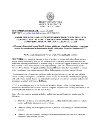 Mayor's Press Release: MAYOR BILL DE BLASIO ANNOUNCES ENHANCED SECURITY MEASURES, INCREASED MENTAL HEALTH SERVICES FOR HOMELESS SHELTERS, IMPROVED COO