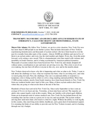 TRANSCRIPT: MAYOR ERIC ADAMS DECLARES ASYLUM SEEKER STATE OF EMERGENCY, CALLS FOR URGENT AID FROM FEDERAL, STATE GOVERNMENTS