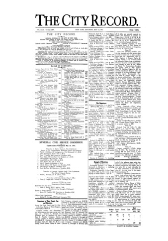 The City Record newspaper publishes notices which includes but is not limited to: public hearings and meetings, public auctions and sales, solicitations and awards and official rules proposed and adopted by city agencies. This is the City Record Newspaper for May 13, 1916.