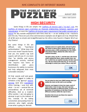 The New York City Conflicts of Interest Board's monthly publication featuring ethics-focused puzzles.