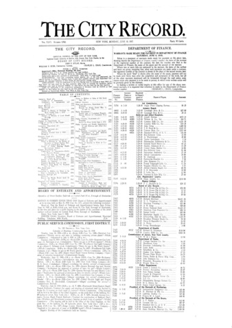 The City Record newspaper publishes notices which includes but is not limited to: public hearings and meetings, public auctions and sales, solicitations and awards and official rules proposed and adopted by city agencies. This is the City Record Newspaper for June 10, 1918.