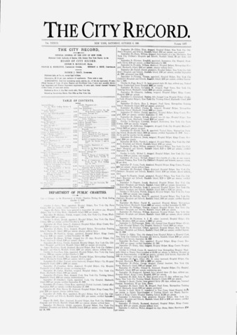 The City Record newspaper publishes notices which includes but is not limited to: public hearings and meetings, public auctions and sales, solicitations and awards and official rules proposed and adopted by city agencies. This is the City Record Newspaper for October 09, 1909.