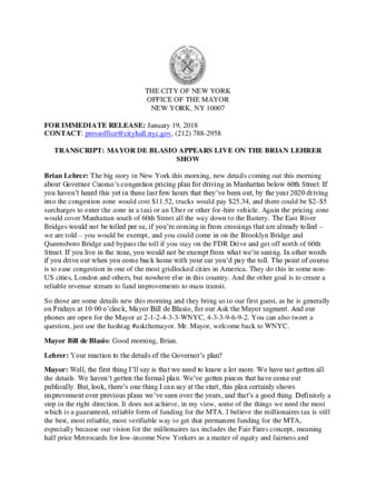 Press Release: TRANSCRIPT: MAYOR DE BLASIO APPEARS LIVE ON THE BRIAN LEHRER SHOW