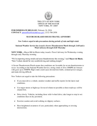 Mayor's Press Release: MAYOR DE BLASIO ISSUES TRAVEL ADVISORY