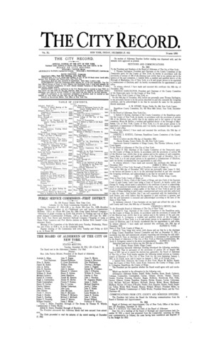 The City Record newspaper publishes notices which includes but is not limited to: public hearings and meetings, public auctions and sales, solicitations and awards and official rules proposed and adopted by city agencies. This is the City Record Newspaper for December 27, 1912.