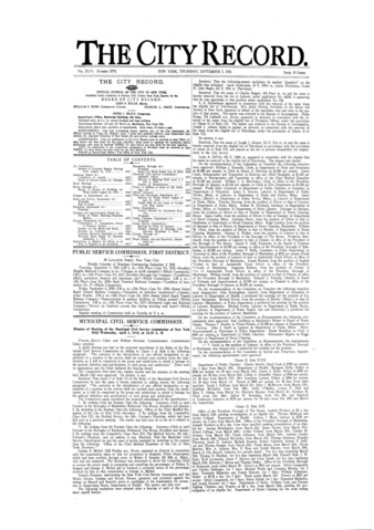 The City Record newspaper publishes notices which includes but is not limited to: public hearings and meetings, public auctions and sales, solicitations and awards and official rules proposed and adopted by city agencies. This is the City Record Newspaper for September 05, 1918.