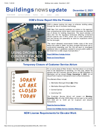 Building News is a public subscription listserv for news and changes taking place at the Department of Buildings.