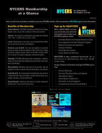 A brochure that explains the benefit of collecting a pension when you retire, as well as the benefit NYCERS membership provides regarding disability protection, survivor benefits, the ability to borrow against your contributions, and more.