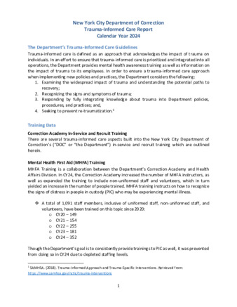 - Annual report on trauma-informed care in city correctional facilities