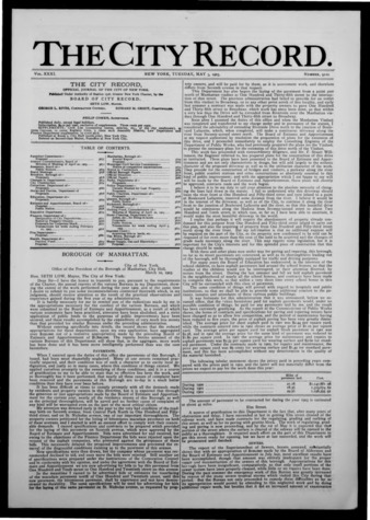 The City Record newspaper publishes notices which includes but is not limited to: public hearings and meetings, public auctions and sales, solicitations and awards and official rules proposed and adopted by city agencies. This is the City Record Newspaper for May 05, 1903.