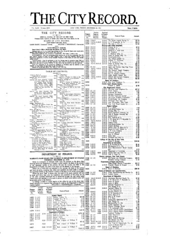 The City Record newspaper publishes notices which includes but is not limited to: public hearings and meetings, public auctions and sales, solicitations and awards and official rules proposed and adopted by city agencies. This is the City Record Newspaper for December 24, 1915.