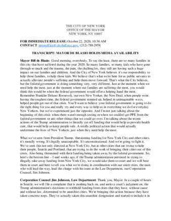 Mayor's Press Release: MAYOR DE BLASIO HOLDS MEDIA AVAILABILITY