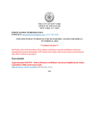 UPDATED PUBLIC SCHEDULE FOR MAYOR ERIC ADAMS FOR FRIDAY, OCTOBER 21, 2022