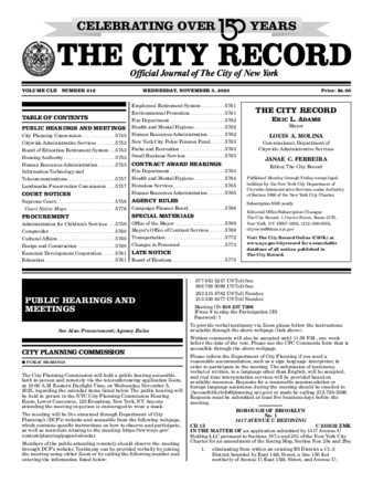 The City Record newspaper publishes notices which includes but is not limited to public hearings and meetings, public auctions and sales, solicitations and awards and official rules proposed and adopted by city agencies.
