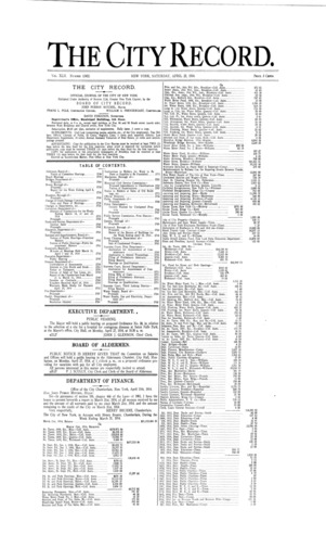 The City Record newspaper publishes notices which includes but is not limited to: public hearings and meetings, public auctions and sales, solicitations and awards and official rules proposed and adopted by city agencies. This is the City Record Newspaper for April 25, 1914.