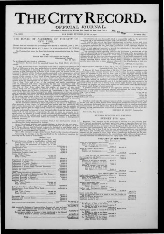 The City Record newspaper publishes notices which includes but is not limited to: public hearings and meetings, public auctions and sales, solicitations and awards and official rules proposed and adopted by city agencies. This is the City Record Newspaper for June 10, 1902.