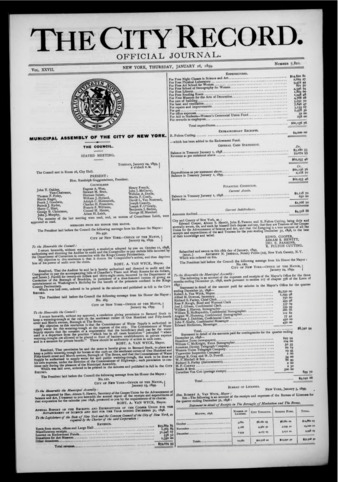 The City Record newspaper publishes notices which includes but is not limited to: public hearings and meetings, public auctions and sales, solicitations and awards and official rules proposed and adopted by city agencies. This is the City Record Newspaper for January 26, 1899.