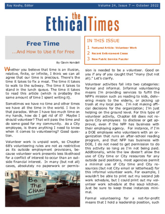 The New York City Conflicts of Interest Board's monthly publication featuring articles and updates on ethics for the NYC public servant