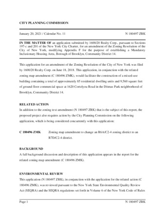 IN THE MATTER OF an application submitted by 1600/20 Realty Corp., pursuant to Sections 197-c and 201 of the New York City Charter, for an amendment of the Zoning Resolution of the City of New York, modifying Appendix F for the purpose of establishing a Mandatory Inclusionary Housing Area, Borough