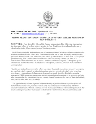 MAYOR ADAMS’ STATEMENT ON INFLUX OF ASYLUM SEEKERS ARRIVING IN NEW YORK CITY