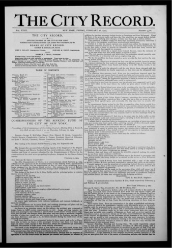 The City Record newspaper publishes notices which includes but is not limited to: public hearings and meetings, public auctions and sales, solicitations and awards and official rules proposed and adopted by city agencies. This is the City Record Newspaper for February 26, 1904.