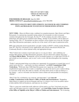 Mayor's Press Release: OPEN RESTAURANTS MEET OPEN STREETS: MAYOR DE BLASIO COMBINES POPULAR PROGRAMS TO EXPAND OUTDOOR DINING OPTIONS