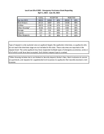 NYC Human Resources Administration's Emergency Assistance Grant Reporting (April – June 2023)