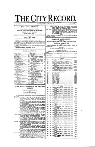The City Record newspaper publishes notices which includes but is not limited to: public hearings and meetings, public auctions and sales, solicitations and awards and official rules proposed and adopted by city agencies. This is the City Record Newspaper for January 17, 1910.