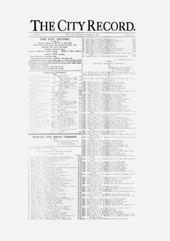 The City Record newspaper publishes notices which includes but is not limited to: public hearings and meetings, public auctions and sales, solicitations and awards and official rules proposed and adopted by city agencies. This is the City Record Newspaper for October 30, 1909.